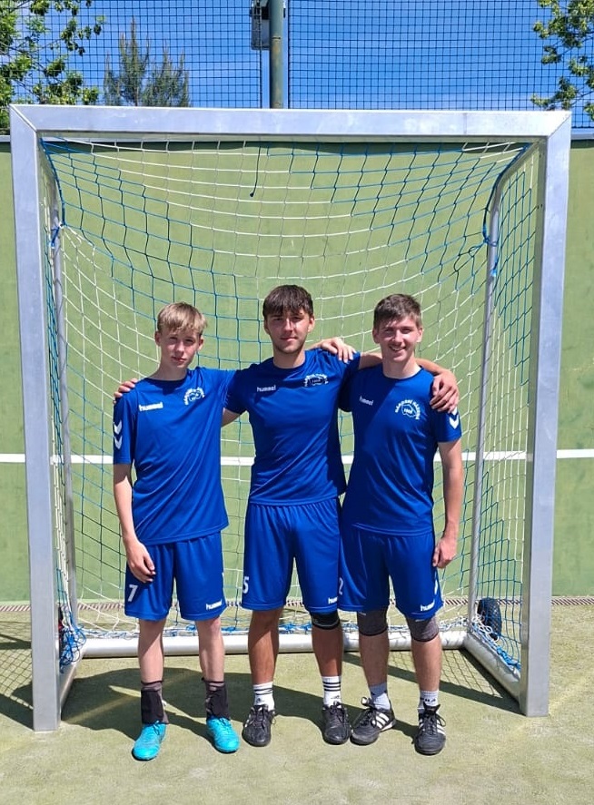 TALENTOVANÍ JUNIOŘI z Dobrušky, zleva: útočník Oliver Kejval, obránce Sebastian Kramer a útočník Filip Kubec
