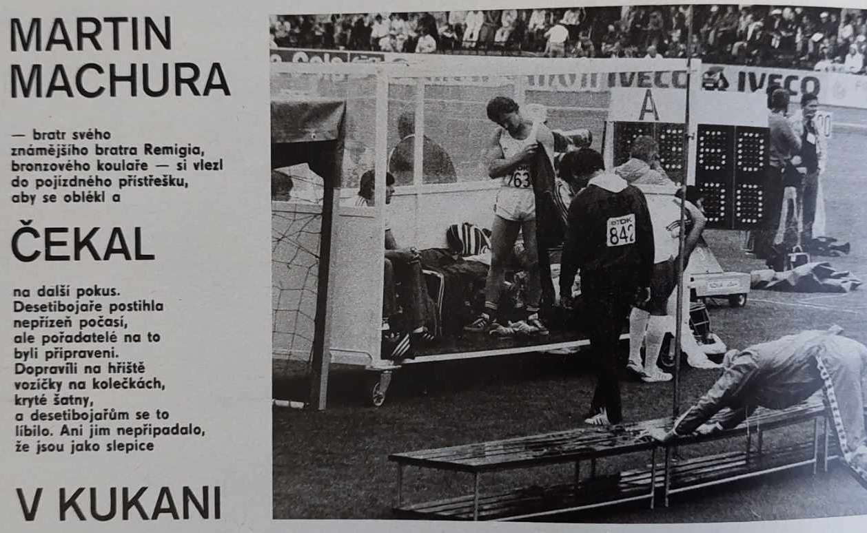 Postupně jste se v 80tých letech stal čtyřnásobným mistrem Československa a trojnásobným vicemistrem, posunoval jste národní rekord. Kolik je váš desetibojařský rekord? „Ano, několikrát jsem posunul československý rekord, můj poslední byl myslím v roce 1983 za 7974 bodů. Abych pravdu řekl, už ani přesně nevím, kolik jsem těch titulů měl, ale největším úspěchem bylo 12. místo na ME 1982 v Athénách a 13. místo na MS 1983 v Helsinkách.“