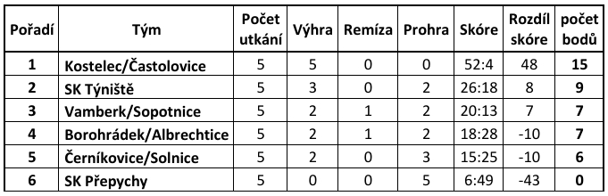 Tabulka ZL – U13: