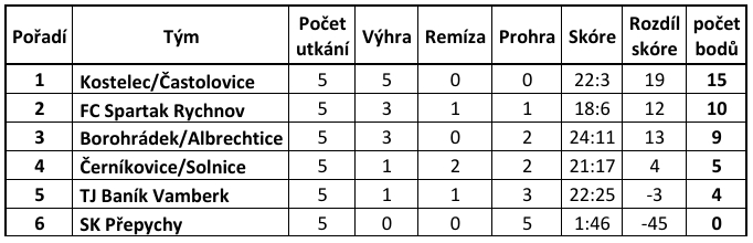 Zimní liga nabídla soutěže v kategoriích U13 a U16, ta halová pak pokryla přípravky od U7 po U11. V každé kategorii byla vidět nejen vysoká účast, ale i rostoucí kvalita. „V kategoriích zimní ligy dominoval celek Kostelec/Častolovice, který dokázal ovládnout, jak soutěž mladších žáků, tak i mladšího dorostu. V přípravkách pak zaujaly především výkony Borohrádek/Albrechtice v U11, SK Přepychy v kategorii U9 a SK Vysoké Mýto v U7. Za zmínku stojí také výkony Vamberka, který se pravidelně umístil na třetím místě (U7, U9, U11, U13),“ podotkl Ondřej Frejvald.