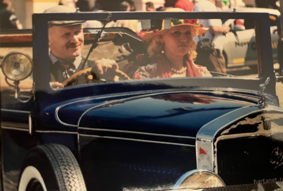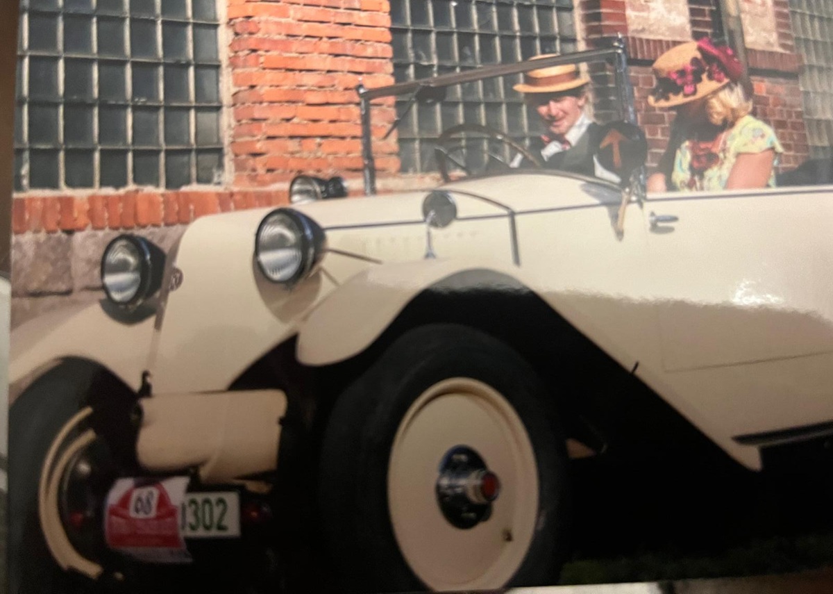 MILOVNÍK autoveteránů. Martin v modré Praga piccolo kabriolet Kellner z roku 1930 s manželkou Leou a dole v Tatře 30 Phaeton