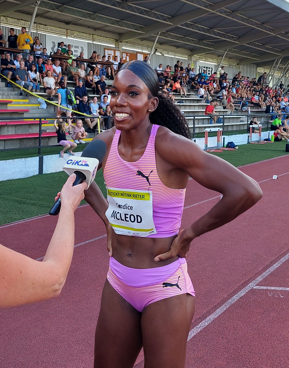 NEJVĚTŠÍ zahraniční hvězdou byla Candice McLeod z Jamajky, finalistka olympijských her na 400m a členka jamajské štafety 4×400 m, s níž získala bronz na OH 2020 a stříbro na MS 2022 a 2023.