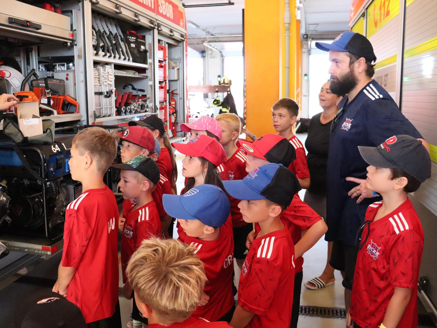 NÁVŠTĚVA rychnovských hokejistů u hasičů v rámci letního kempu